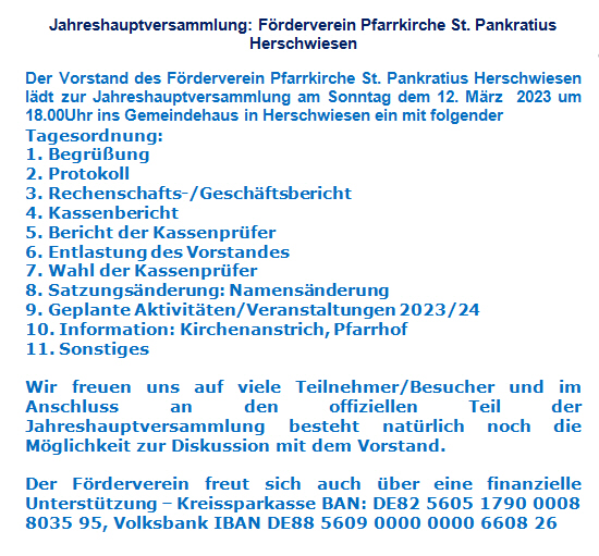 Förderverein der Kirche St. Pankratius, Herschwiesen